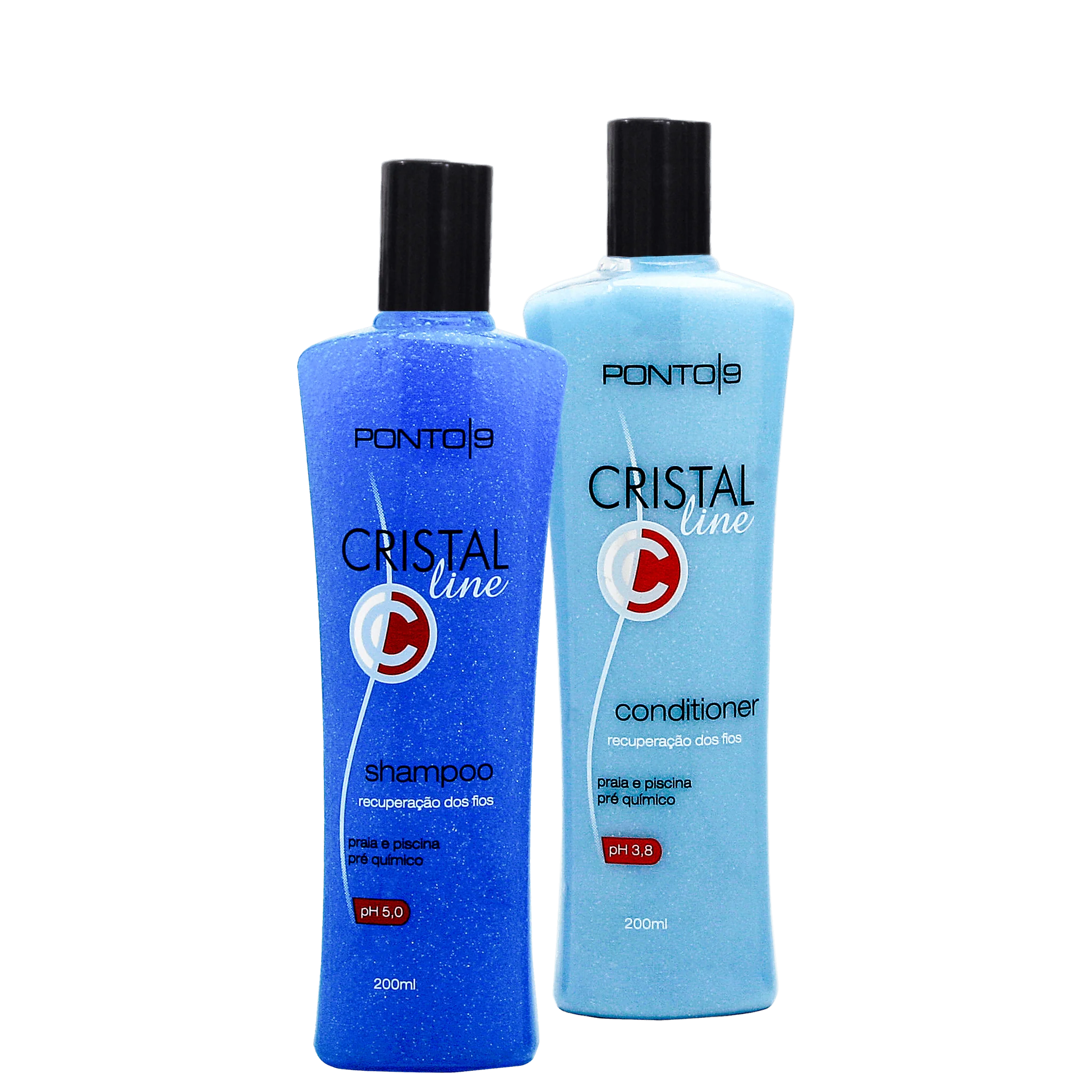 El Kit Ponto 9 Cristal ha sido formulado especialmente para cabellos expuestos al sol, al cloro de piscinas y al agua salada del mar. Su acción elimina residuos de cloro, yodo y sal, mientras fortalece la fibra capilar, repara las cutículas y deja el cabello suave, sedoso y con un brillo radiante.